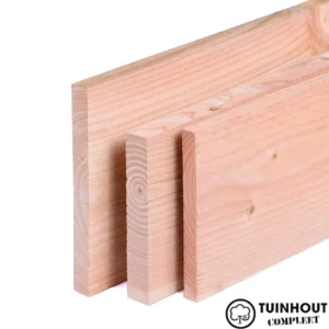 Douglas planken geschaafd online bestellen? Tuinhout Compleet biedt 7 verschillende kopmaten en de meest gangbare lengtematen waardoor u altijd de geschikt plan vindt voor uw tuinproject. De geschaafde Douglas planken van Tuinhout Compleet worden eigen handig gezaagd in onze eigen houtzagerij. Hierdoor zijn wij instaat voorraadzekerheid te bieden en snel te leveren. Binnen 10 werkdagen heeft u uw bestelling al in huis! Bent u van plan een stijlvolle schutting op te zetten, karaktervolle meubelstukken te creëren, of een unieke gevelbekleding te realiseren, onze geschaafde Douglas planken zijn de perfecte keuze. Zoekt u naar specifieke maten of een op maat gemaakte oplossing? Neem telefonisch contact op voor de mogelijkheden via +31 416 85 85 02 of per mail via: info@tuinhout-compleet.nl.