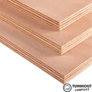 Multiplex van hardhout is een veelzijdig en sterk bouwmateriaal, vervaardigd door meerdere lagen dun hardhout fineer kruislings over elkaar te leggen en samen te persen onder hoge druk en temperatuur. Deze structuur zorgt voor een uitzonderlijke sterkte en stabiliteit, waardoor het materiaal bestand is tegen kromtrekken en scheuren. De buitenste lagen van het multiplex bestaan uit hoogwaardig hardhout, wat niet alleen de duurzaamheid verhoogt maar ook een aantrekkelijk oppervlak biedt dat kan worden geschilderd, gebeitst of gelakt. Beschikbaar in verschillende afmetingen en afwerkingen bij Tuinhout Compleet, biedt multiplex van hardhout een ideale oplossing voor zowel de doe-het-zelver als de professionele bouwer die op zoek zijn naar kwaliteit en veelzijdigheid in hun projecten.