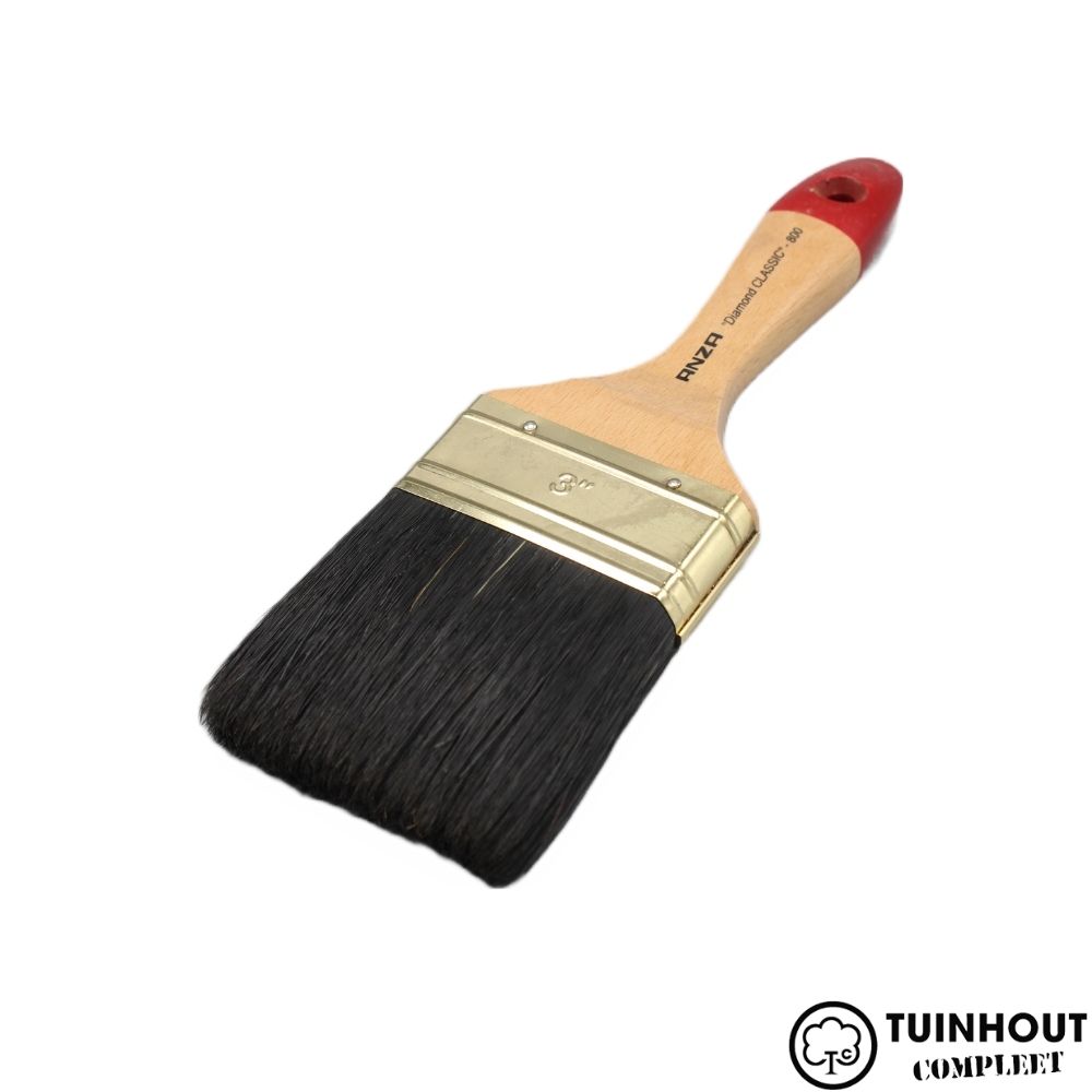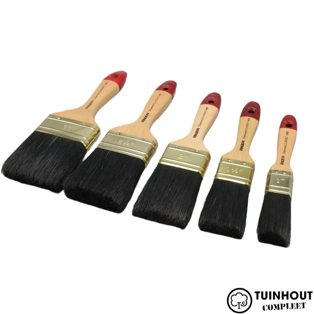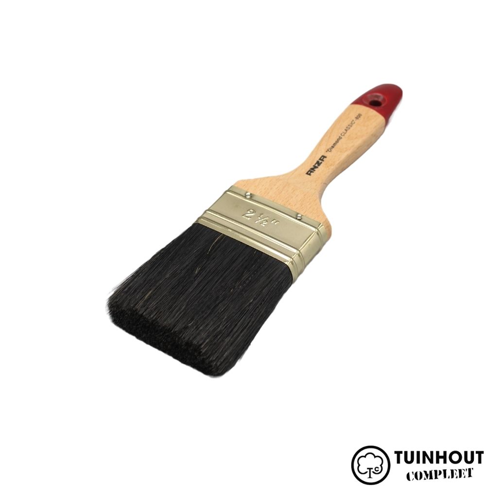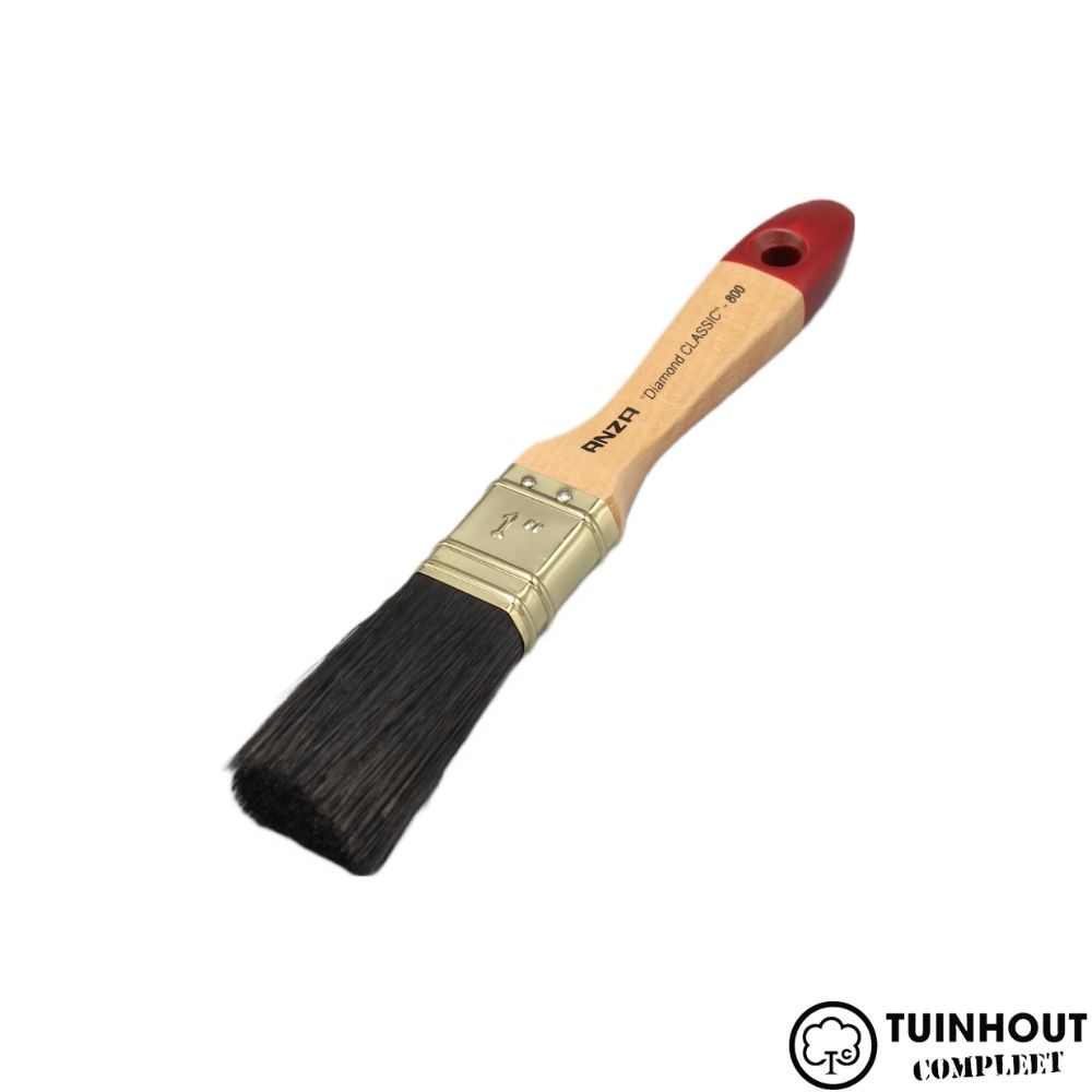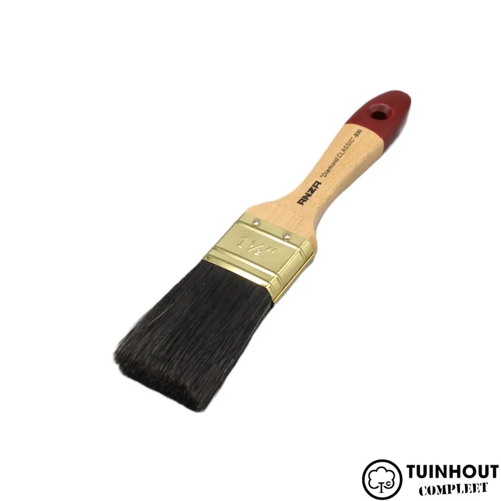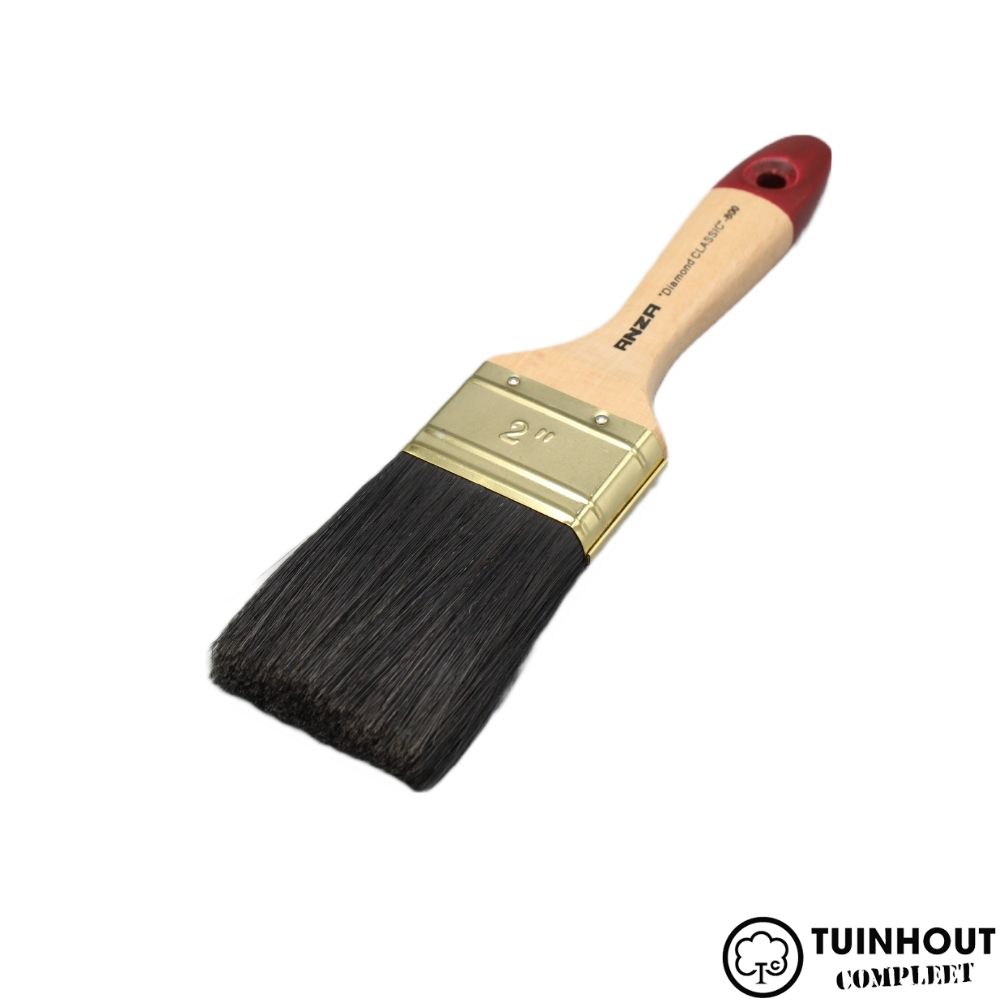 ANZA Diamond Classic Platte kwast. De kwast is gemaakt van een mix van synthetische vezels en zwart varkenshaar. Ook heeft het een steel van geverniste beukenhouten wat zorgt voor een nog fijner gebruik.