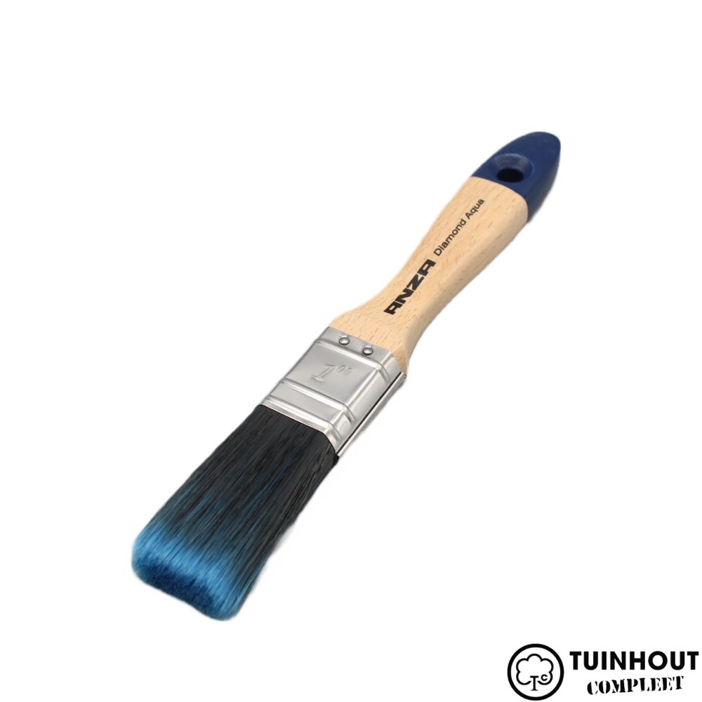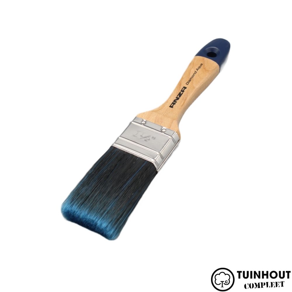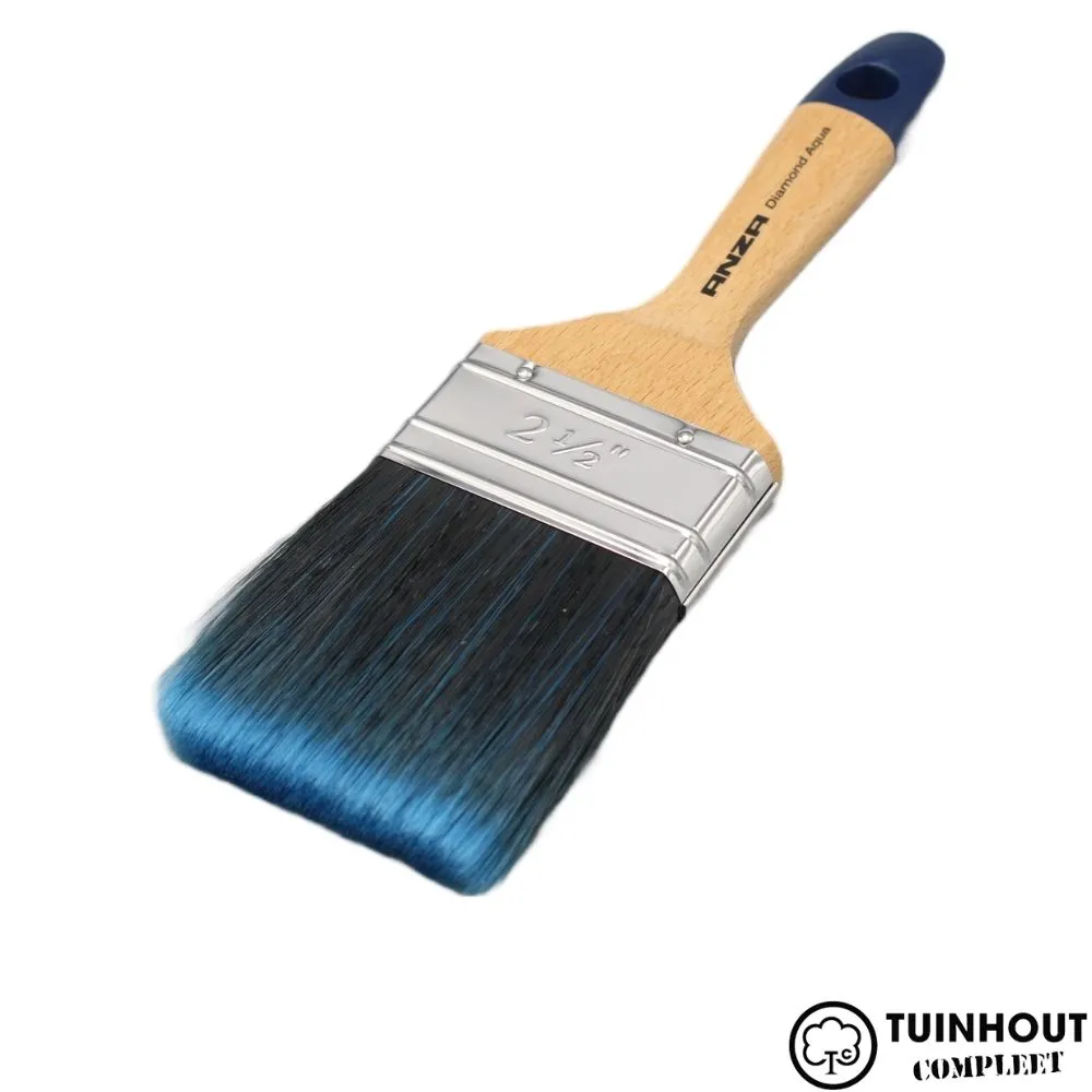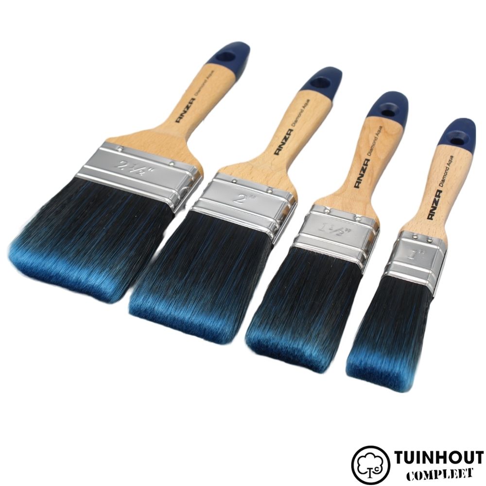 ANZA Diamond Aqua Platte kwast. Deze set platte Diamond Aqua kwasten is nieuw en is sinds kort verkijgbaar. De kwast heeft een nieuwe vezeltechnologie voor een hele mooie graad van de afwerking van je lakwerk. Met de kwast kun je snel werken door de grote verfopname en de kwast is gemakkelijk schoon te maken. De steel is gemaakt van gevernist beukenhout wat zorgt voor een nog fijner gebruik. De kwast is geschikt voor alle waterbasis producten
