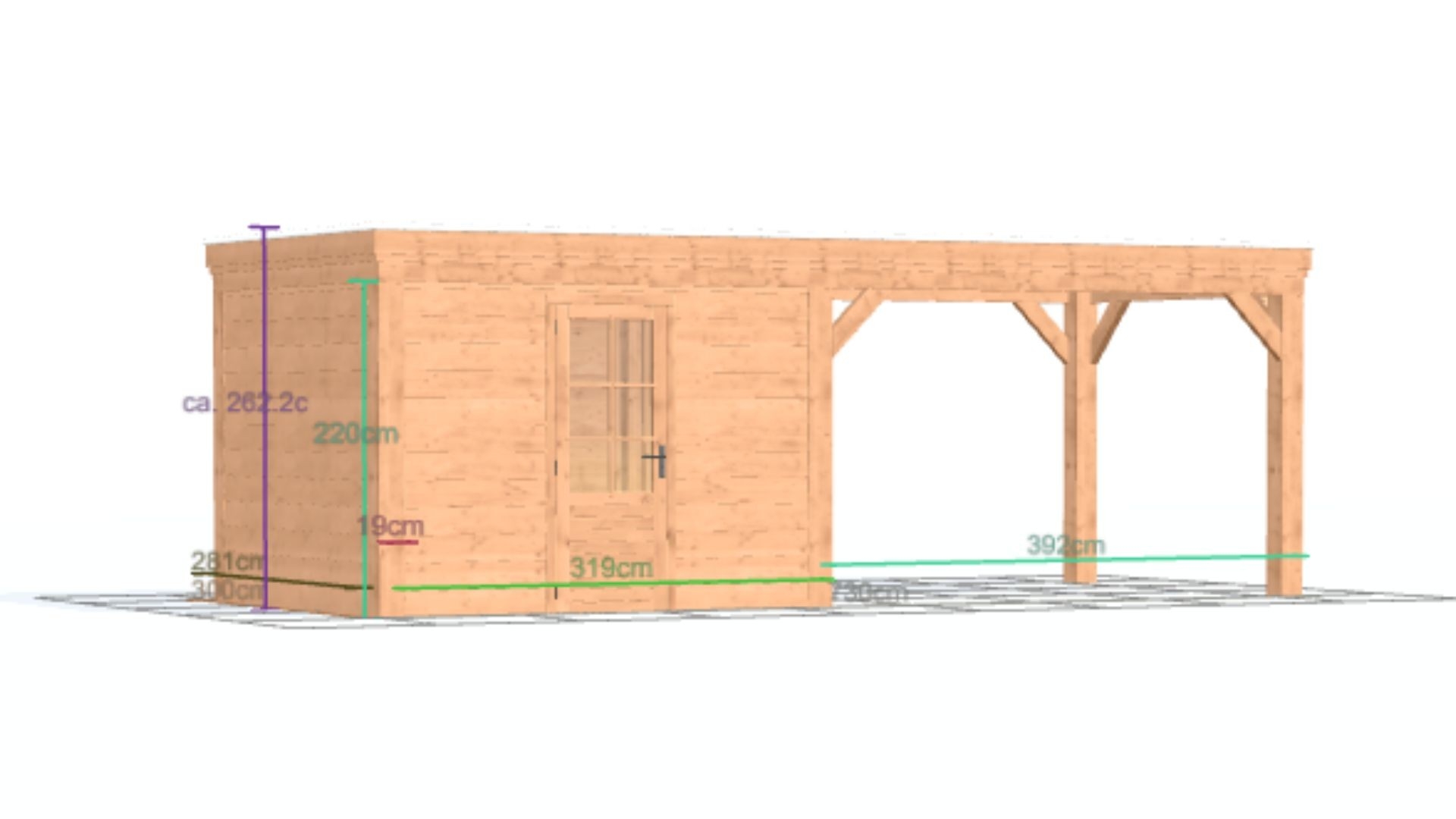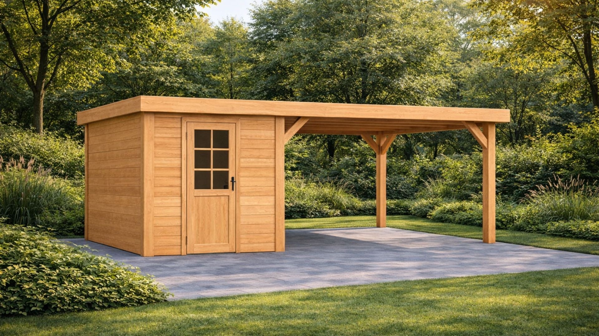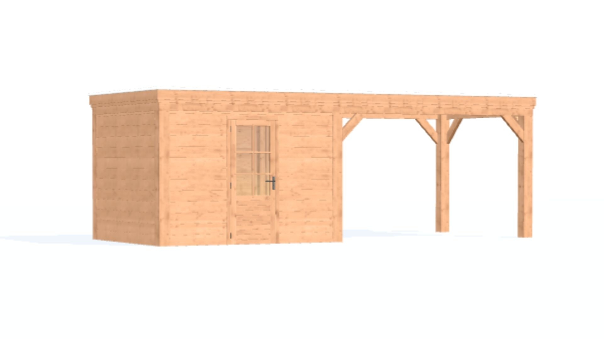 Douglas overkapping met plat dak - Robuust zonder overstek, met berging geschaafd
