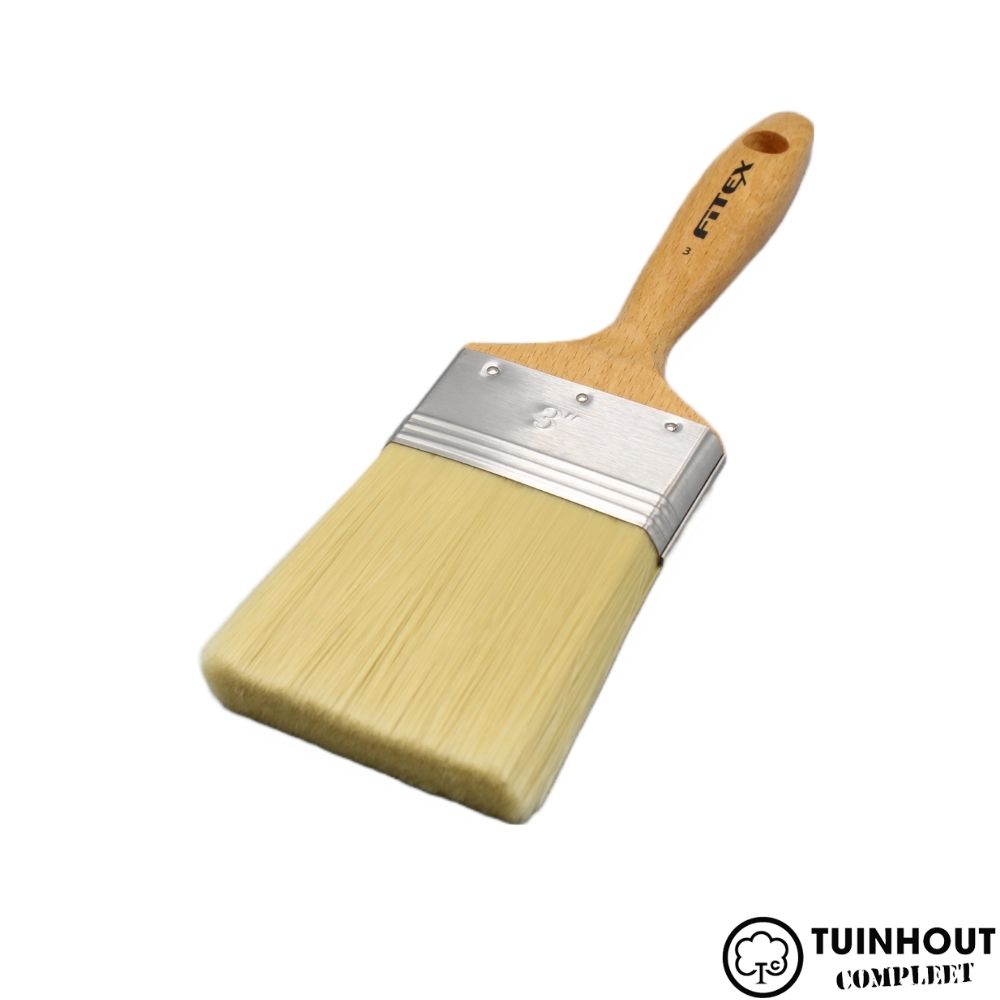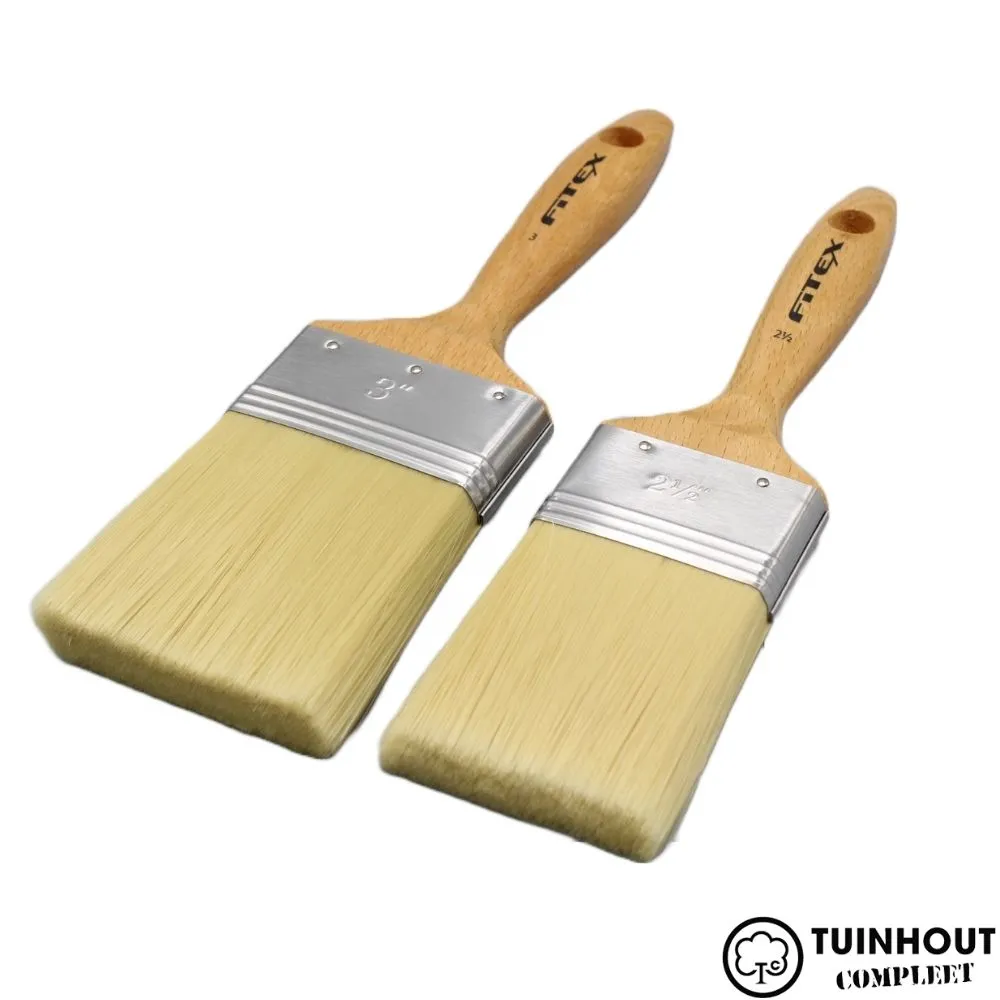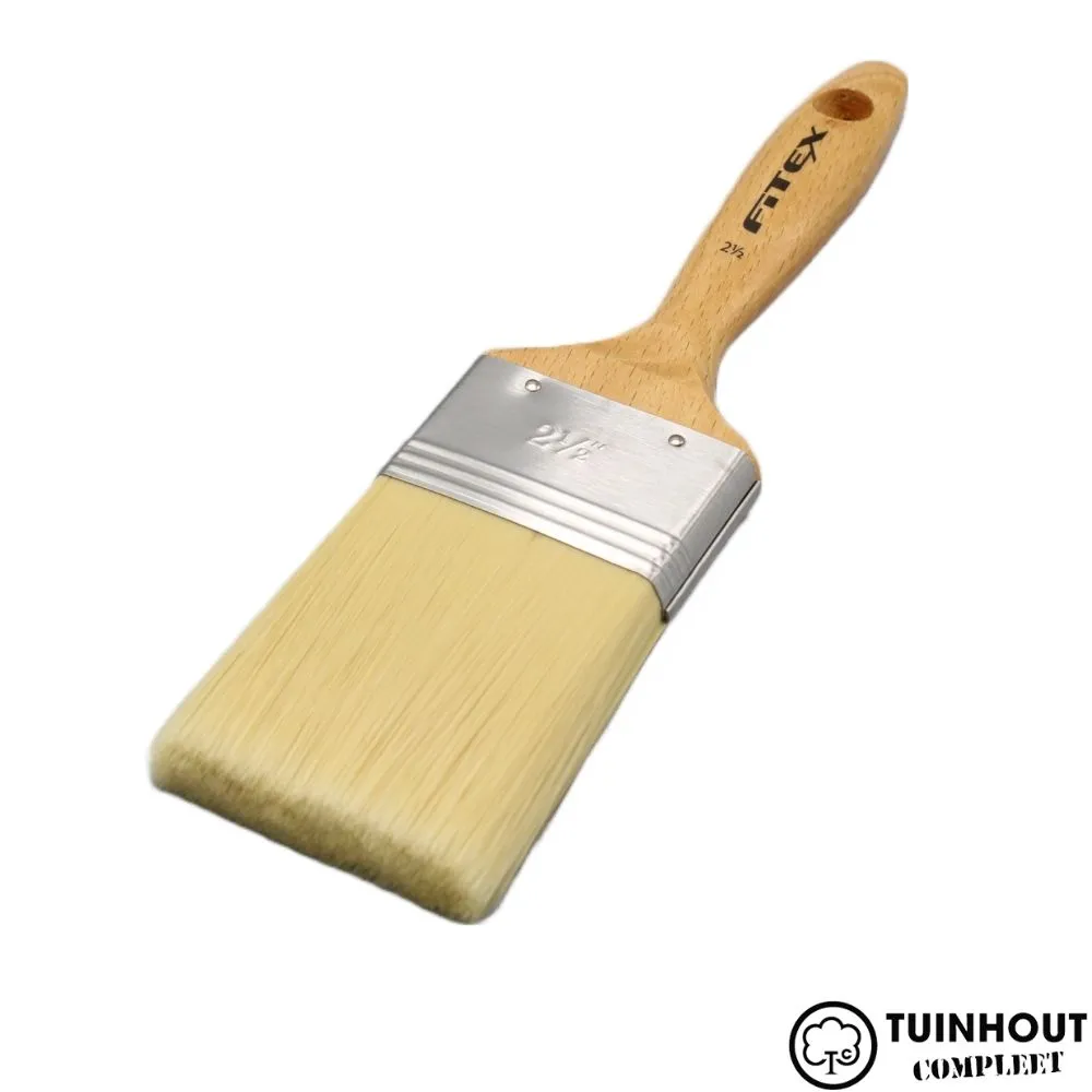 De verfkwast heeft een gewaxte houten steel, kunststof kap en een RVS bus gevuld met volledig synthetisch haar. Fitex Platte Kwast Acryl is geschikt voor semiprofessioneel en professioneel aflakwerk.