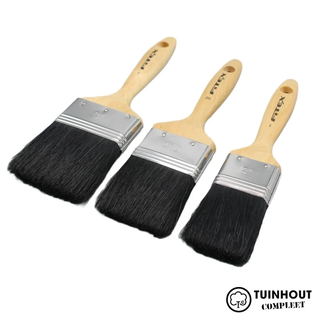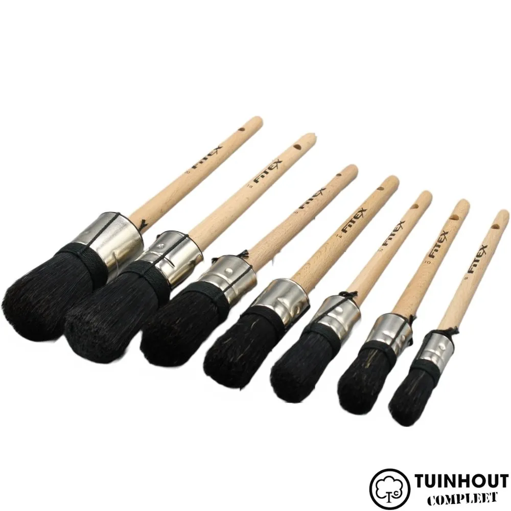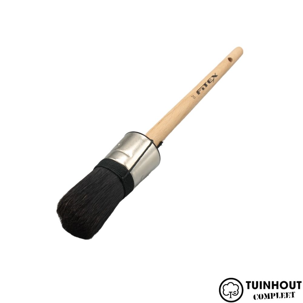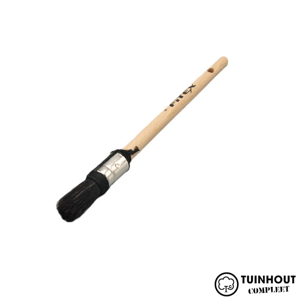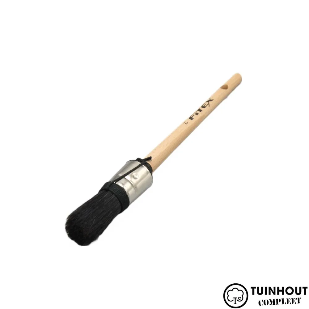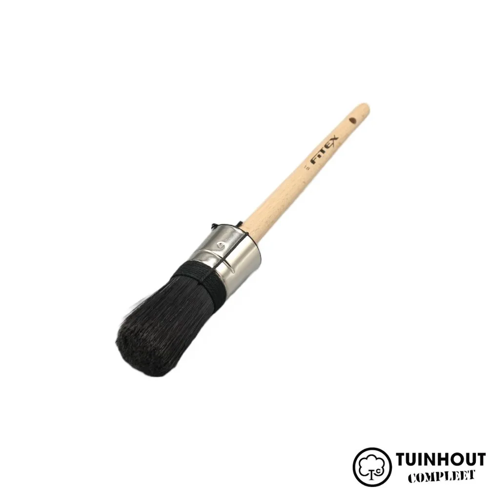 De verfkwast heeft een gewaxte houten steel, kunststof kap en een RVS bus gevuld met Chinees varkenshaar. De katoenen woeling houdt de kwastharen bij elkaar zodat de kwast langer mee gaat. Fitex Patentpuntkwast is geschikt voor semiprofessioneel en professioneel aflakwerk.
