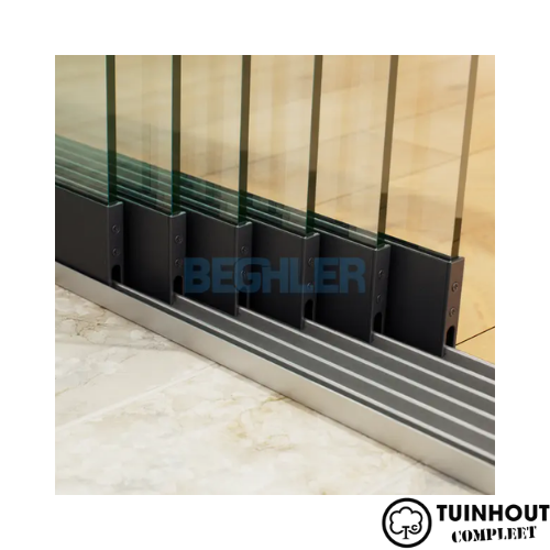 Voor een compleet en strak resultaat is deze glazen schuifwand uit te breiden met verschillende accessoires. Denk aan tochtstrips voor extra bescherming tegen wind en insecten, funderingsbalken voor een stabiele en waterpas ondergrond of glasopvangprofielen voor een nette aansluiting tegen muur of staander. Ook deurgrepen, meenemers en Steel Look strips zijn mogelijk voor extra gebruiksgemak en een moderne uitstraling.