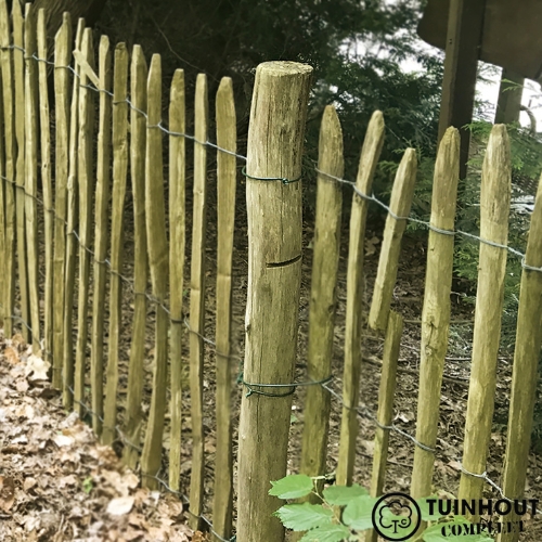 Onze Kastanje palen worden met zorg geselecteerd en met de hand geschild om hun natuurlijke uitstraling te behouden. Dit betekent dat ze niet alleen duurzaam zijn, maar ook naadloos passen bij de natuurlijke omgeving van je tuin. Hun warme kleur en karakteristieke textuur voegen een rustieke elegantie toe aan elke buitenruimte.