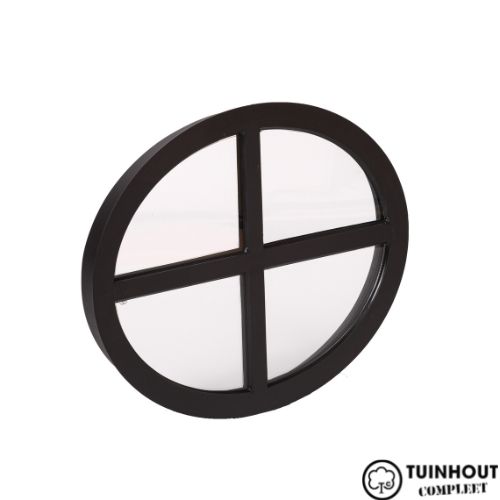 Het ossenoog vormige raam van staal heeft een rustiek en strak uiterlijk. De zwarte kleur zorgt ervoor dat het geschikt is voor bijna ieder buitenshuis project zoals een tuinhuis of schuur.