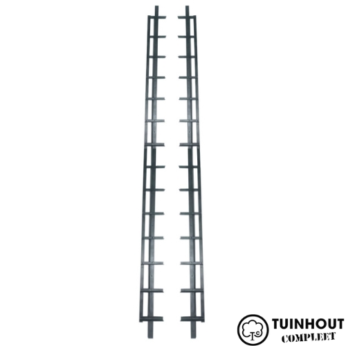 Een shutter systeem van roestvrij staal in de kleur zwart met een breedte van 166 cm en 14 planken zou in dit geval dienen als een soort luik- of shuttermechanisme om de opening in je tuinhuis of aanbouw af te sluiten of te beschermen tegen de elementen.