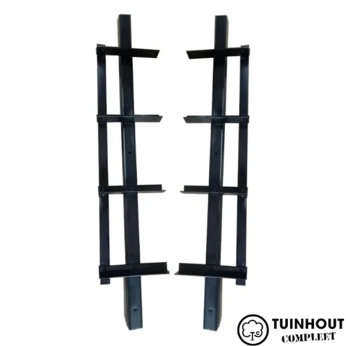 Het Shutter systeem van RVS in het zwart 220 cm met 19 planken is bedoeld om te worden gebruikt in tuinhuizen en aanbouw van tuinhout, waar het fungeert als een mechanisme om open en dicht te zetten, vergelijkbaar met luiken of shutters voor ramen.