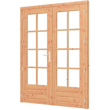 Een douglas stapeldorpeldeur met ramen is ideaal voor tuinhuizen, schuren en buitenverblijven. Deze deur wordt geleverd met deurbeslag, kozijn en raam. Doordat het hout gedroogd en geschaafd is ervaart u een hoge kwaliteit die jarenlang meegaat. De douglas stapeldorpeldeur dubbel heeft een afmeting van 1500×2060 mm, de afmeting van het kozijn is 1636×2136 mm (bxh). Tip: Wilt u de stapeldorpeldeur een langere levensduur geven? Kies er dan voor de deur te behandelen met Remmers HK-lazuur. Wij adviseren HK-lazuur kleurloos in combinatie met Houtbeits Long Life UV voor een langere levensduur en tegen vergrijzing of HK-lazuur douglas wanneer u een langere levensuur wil en de douglas kleur wil behouden/benadrukken. We raden altijd aan om de deuren, aan beide zijde, te behandelen met een beits en olie. Dit om kromtrekking te voorkomen, vergrijzing tegen te gaan en de levensduur te verlengen. Handleiding afwerking ramen:Handleiding afwerken ramen en deuren Naast de stapeldorpeldeur rechtsdraaiend bieden wij ook de volgende varianten stapeldorpeldeuren aan: Stapeldorpeldeur linksdraaiendStapeldorpeldeur rechtsdraaiend