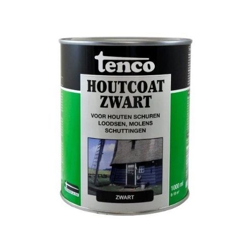 Tenco Houtcoat zwart is een speciale coating voor houten objecten welke voorheen zijn behandeld met teerproducten. Tenco Houtcoat zwart is een reukarme dekkende duurzame coating op acrylbasis met water als oplosmiddel. Tenco Houtcoat zwart wordt gebruikt ter bescherming en verfraaiing van houten objecten zoals: schuren, loodsen, schuttingen, molens, etc. waarbij het klassieke uiterlijk behouden blijft.