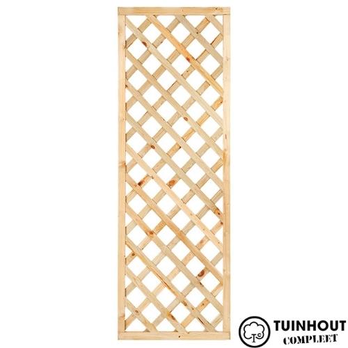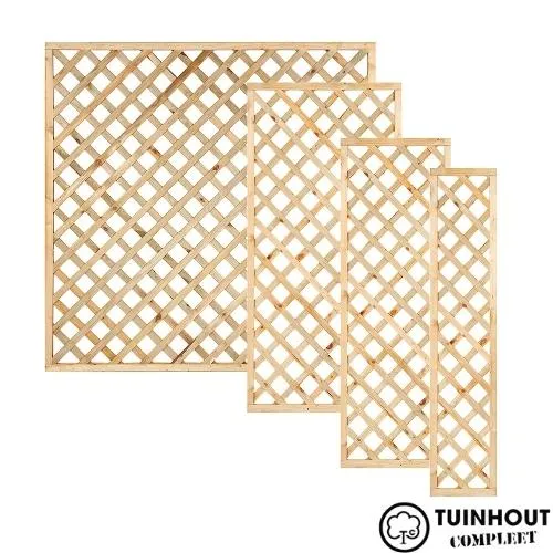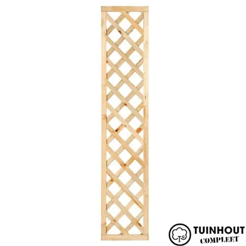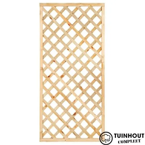 Onze Trellis Grenen met Diagonale Lamellen is de perfecte aanvulling op uw tuin. Met een hoogte van 180 cm en beschikbaar in verschillende breedtes - 40 cm, 60 cm, 90 cm en 180 cm - biedt deze trellis zowel stijl als veelzijdigheid voor al uw buitenprojecten.