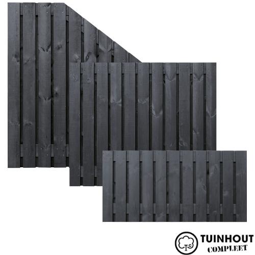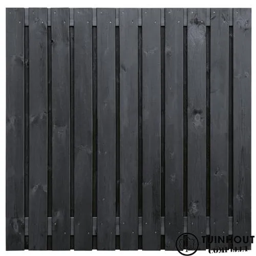 Tuinscherm grenen Dresden 180 cm breed zwart gespoten verticaal