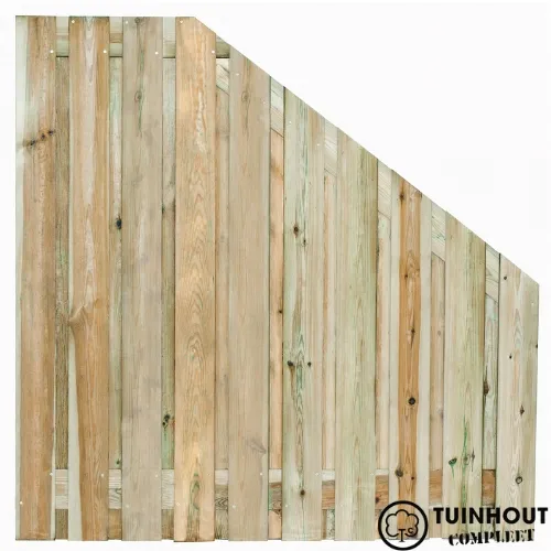 Waarom Kiezen voor Tuinscherm Grenen Enschede? Dit tuinscherm is gemaakt van geïmpregneerd grenenhout, dat bekend staat om zijn duurzaamheid en weerbestendigheid. Het verticale ontwerp biedt een eigentijdse uitstraling, terwijl de aflopende variant en de tooguitvoering een decoratieve touch toevoegen aan uw tuin.