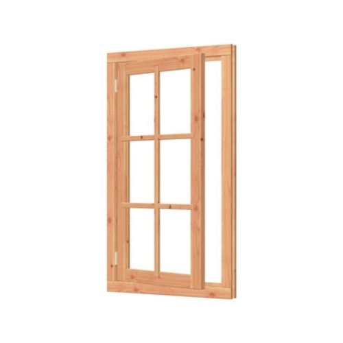 Wij leveren het raam met hang- en sluitwerk, kozijn, en 6-ruits roedeverdeling.