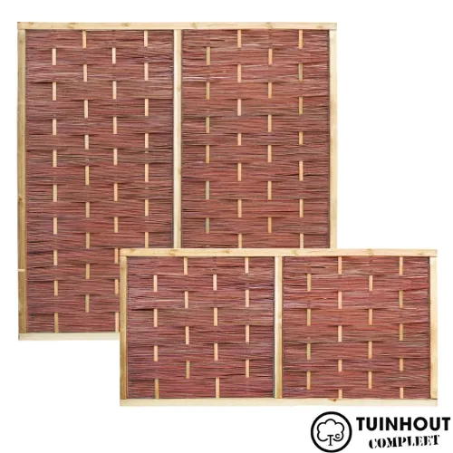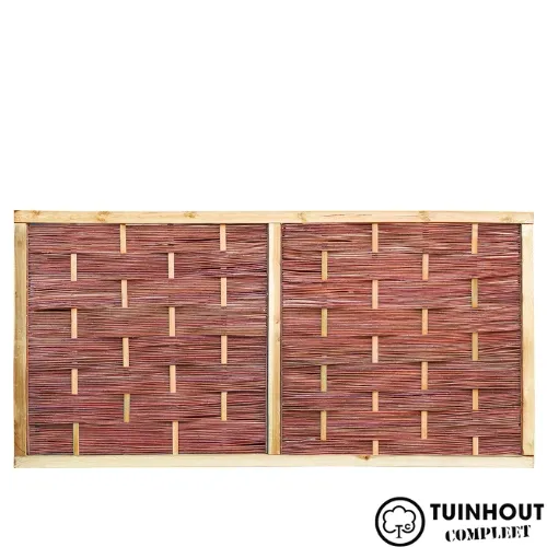 Wilgenteenscherm met houten lijst 180 cm breed verticaal